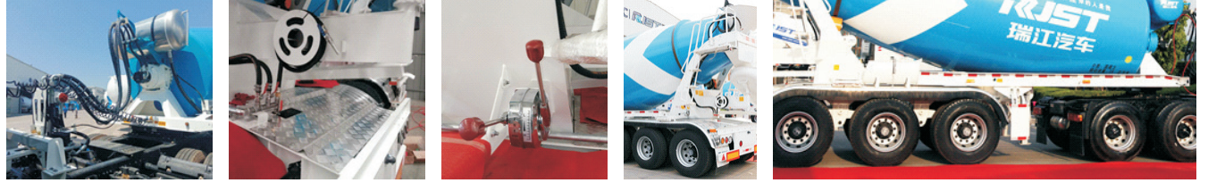 中集瑞江系列混凝土搅拌运输车覆盖了搅拌行业法规方量的产品。底盘主要采用红岩、南京徐工、欧曼、陕汽、中国重汽、联合卡车、东风大力神、解放、江淮格尔发以及日野、广汽日野、三菱、五十铃等混凝土搅拌车专用底盘。整车质量上乘、性能优越、运行可靠、动力性强,用于与各类搅拌站配套,运输符合匀质要求的预拌混凝土,也可进行缩拌和车拌作业,是搅拌站运输商品混凝土的理想设备。