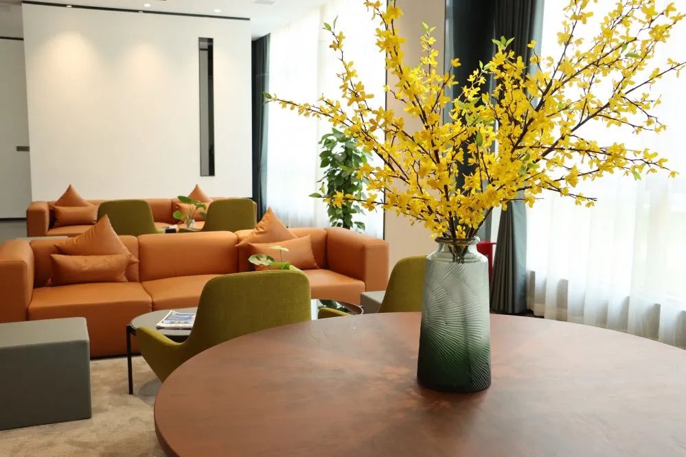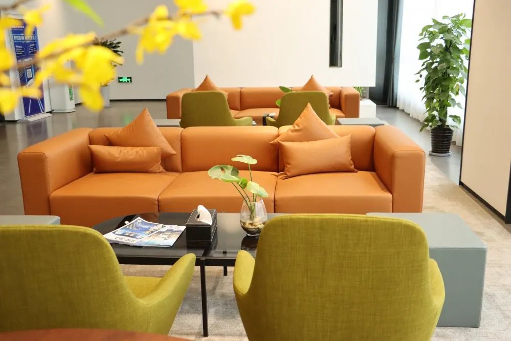 其中接待共享大厅墙面全部采用木饰面与干挂石材相结合的方式,作为装饰面层材料,功能区合理划分,增设一楼连廊,形成一条通往客户体验中心的快速通道,与客户的心更近一步。另外,公司特聘请专业室内检测机构对办公楼室内空气中污染物浓度进行抽样检测,经检测结果显示,符合II类民用建筑工程的要求。