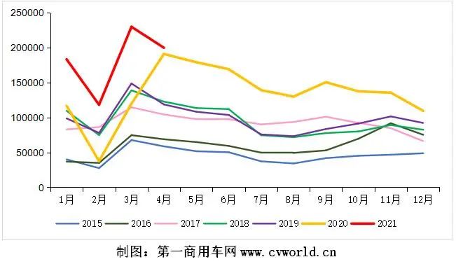 这个约20万辆的销量,也刷新了重卡市场4月份销量的历史纪录,比上年同期(19.12万辆)多出了不到1万辆。可别小看这不到1万辆的净增量,要知道,去年4月份可是全球重卡市场月销量的上一个纪录“保持者”,这个纪录直到今年3月份才被打破。同时,这也是重卡市场连续第13个月刷新纪录——从2020年4月直到2021年4月,重卡市场每个月的销量都刷新了当月销量纪录,创造月度销量的新高。
