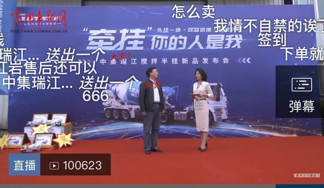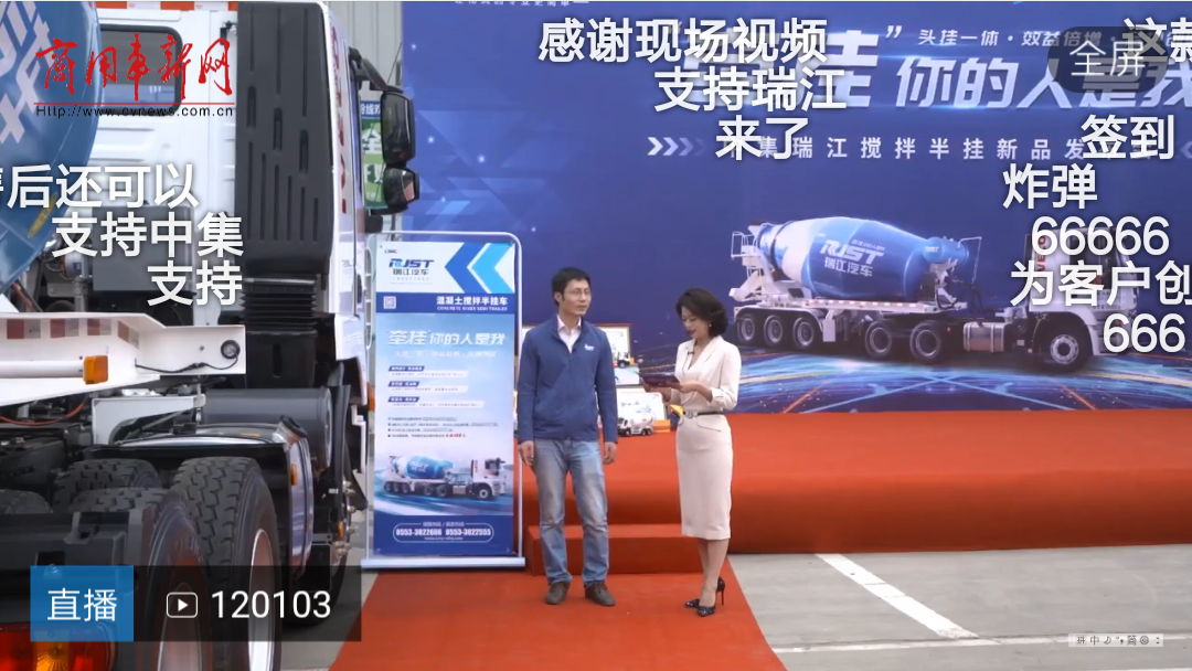 此次“牵挂”你的人是我——头挂一体、效益倍增、合规创收为主题的搅拌半挂车新品发布会线上直播地点在芜湖中集瑞江汽车有限公司的厂区,伴随着指针跳转,15点30分直播正式开始,我们的全新产品红岩瑞江搅拌半挂车也正式亮相!直播间现场气氛瞬间被引爆,评论区弹幕滚动飞速,不少网友直呼“终于等到你”!