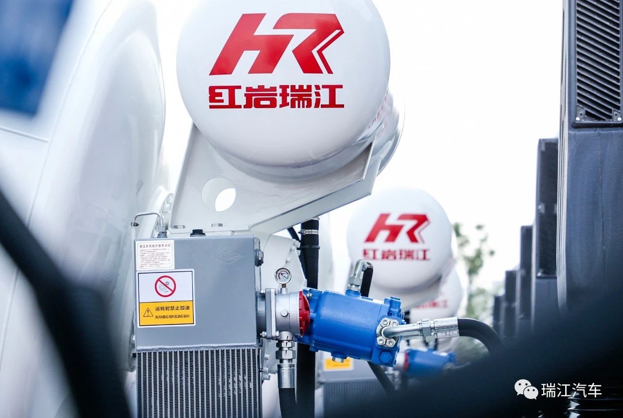 同时,红岩瑞江搅拌车供水系统采用气压式供水,装配450L大水箱,铝塑料材质主水管,尾部配置水管便于清洗车辆;优化加接料箱结构,有效防止滴落,使车辆运行更加环保。